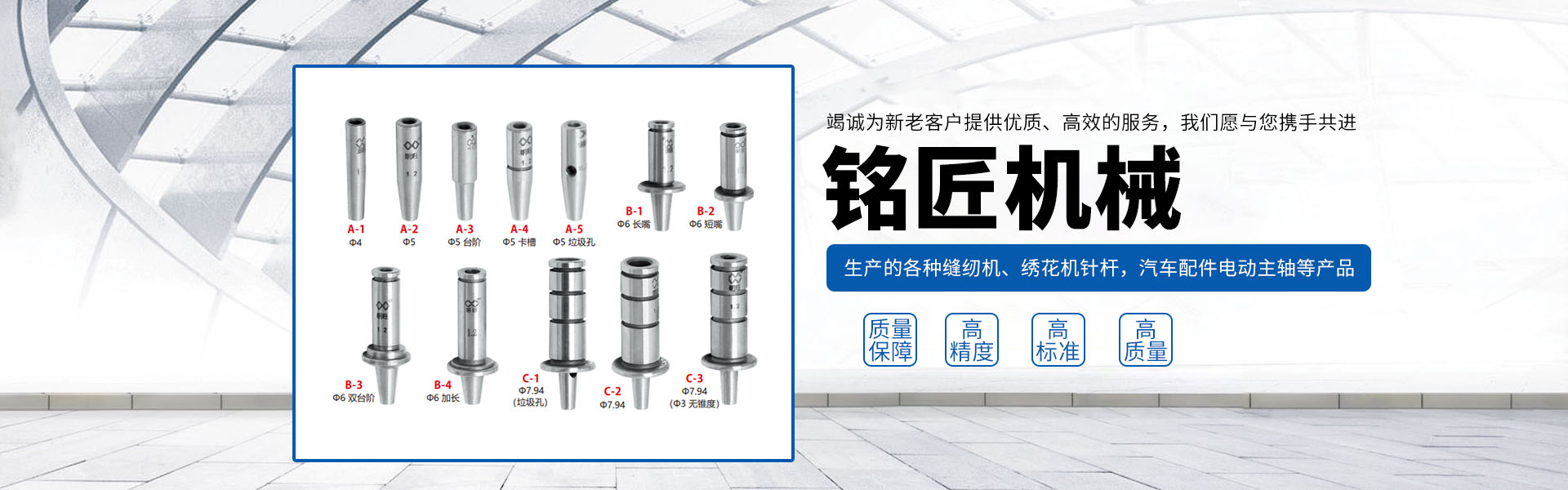 由本廠生產(chǎn)的各種縫紉機(jī)、繡花機(jī)針桿,汽車配件電動主軸,以及使用于紡織機(jī)、皮革機(jī)、傳真機(jī)、印刷機(jī)、鞋機(jī)、眼鏡片磨機(jī)等各種機(jī)床上的軸套類配件產(chǎn)品,以其高標(biāo)準(zhǔn)、高精度、高質(zhì)量的特點,頗受客戶信賴。